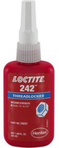 This is a medium strength, medium viscosity, methacrylate-based threadlocking adhesive offering general purpose qualities. The product provides quick fixture times on steel, brass and stainless steel of 5, 15 and 20 min respectively. LOCTITE 242 is thixotropic to prevent migration after application and is intended for fasteners that require normal disassembly with standard hand tools.